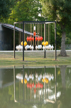 This installation, a porous and mobile suspension, implements a process of appearance of the ineluctable movement of "transgression" of limits. The border (in Hungarian: hatàr) disappears between the work and the spectator and no longer stands as a line of demarcation, which isolates and encloses but becomes, like the sea, a place of passage and of opening where a circulation takes place, one or more possible encounters with oneself or with others. We are faced with this need defined by Tillich to “live and think of the border as a tension between two worlds, two areas that must be put into dialogue and communication. »The interactive work turns into an initiatory journey leading to an awareness: The difficulty of changing perspective, of migrating, of leaving, of making a radical change in a world undergoing profound change. Our movement is constrained by the crossing of suspended elements: stooping, passing by, avoiding, going around, colliding ... The wind (in Hungarian: szél) increases this sensation by rushing freely into the structure. It materializes by producing random shapes and sounds amplified by our movements. This sound spatialization makes it possible to captivate the viewer's attention, to increase their emotional and experimental perception. Through a form in the making, a path where the shapeless induced by the visitor's gesture refers to the unprecedented and to surpassing oneself, the limits imposed or accepted are passable, penetrable and shifting. The borders are not located at the end of a process of life but at the center of each being as here inside the work. Between ebb and flow, water and wind, beyond any shipwreck, in this perpetual movement induced by nature sparkles the promise of renewal.
